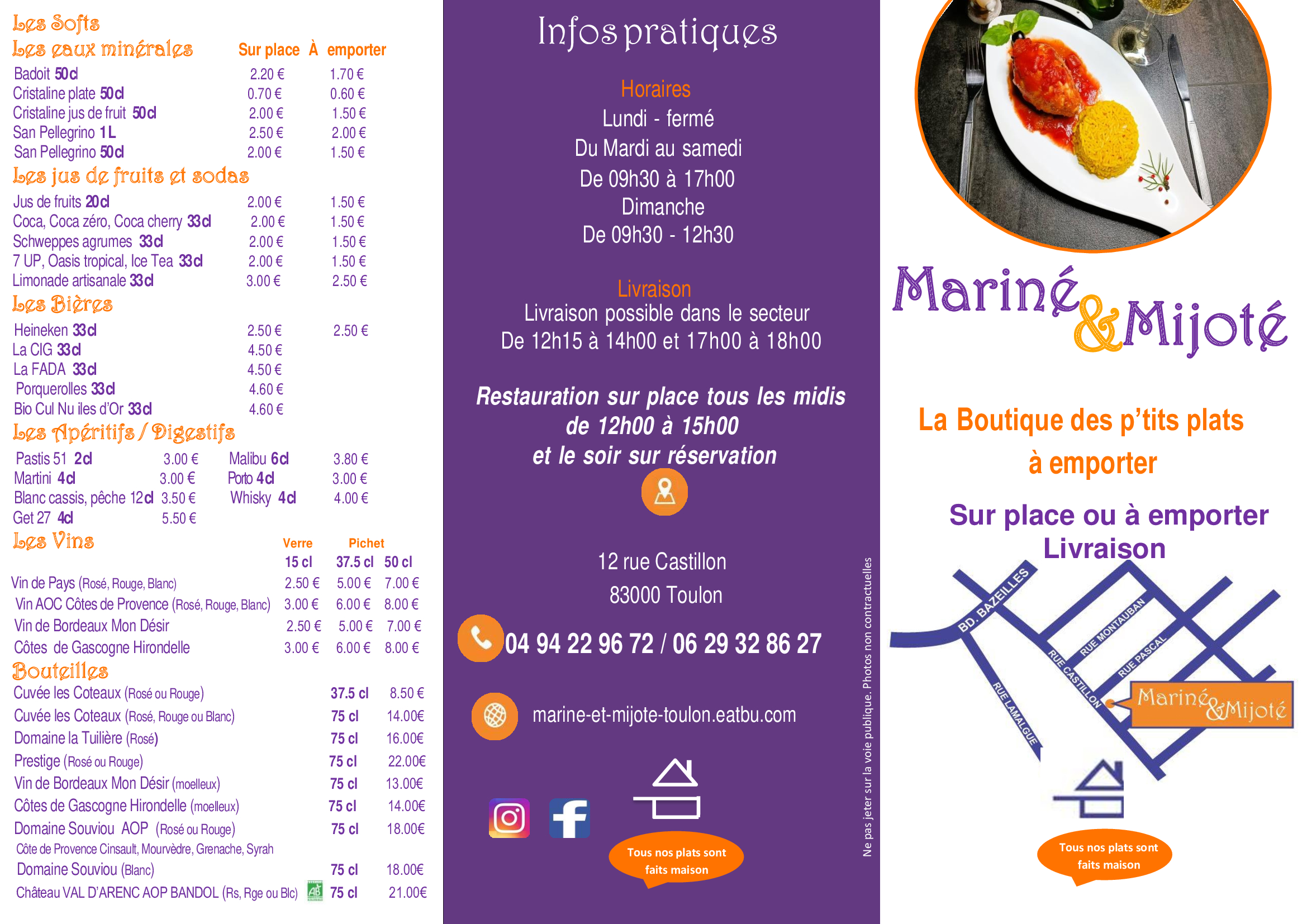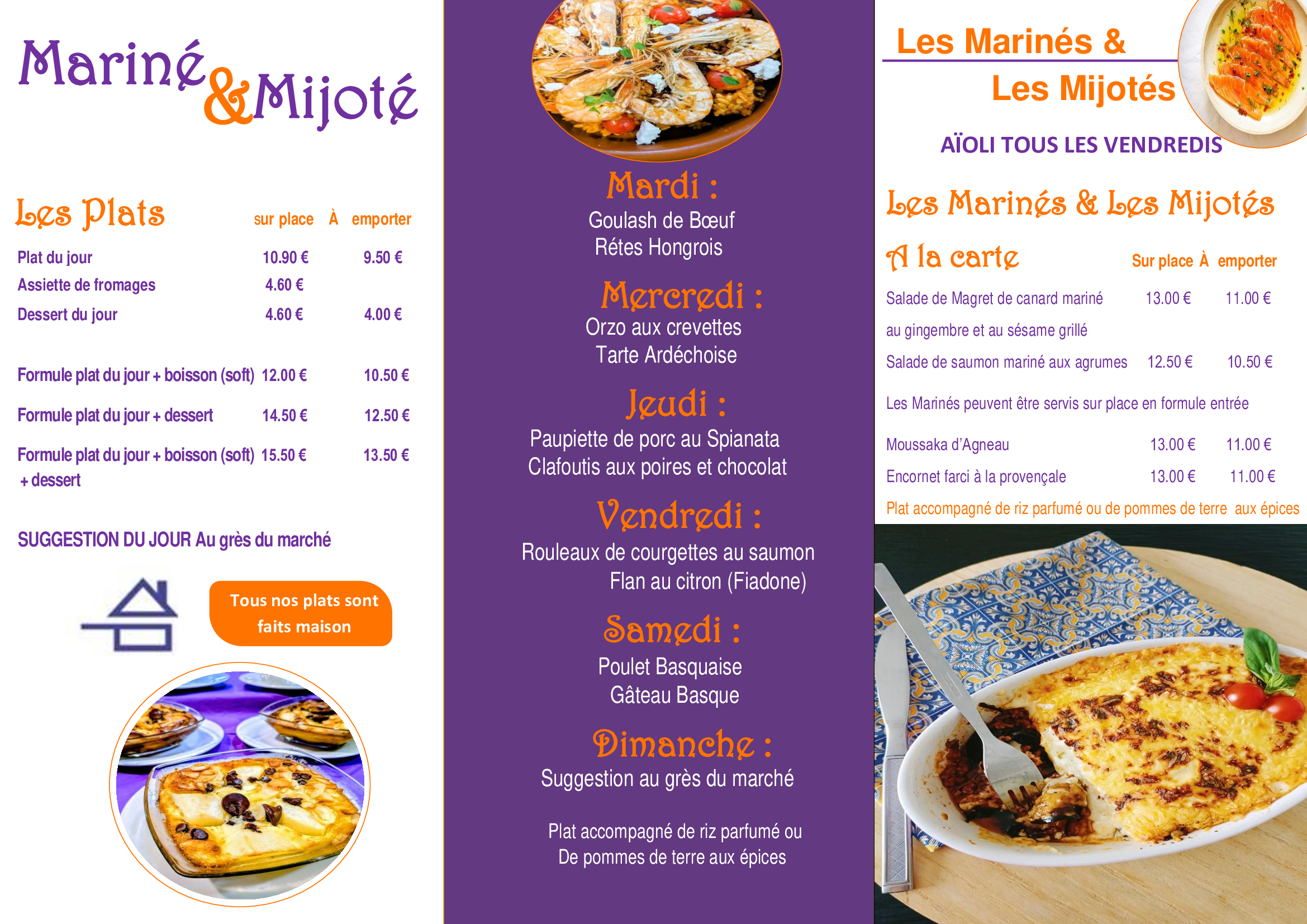 Vous trouverez exposés en vitrine dans notre boutique Mariné & Mijoté des p'tits plats ô saveurs d'ici et d'ailleurs à déguster où bon vous semble.