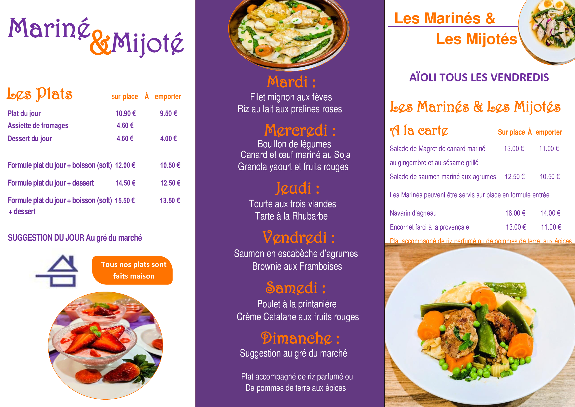 Plat du jour du mardi 9.50€ à emporter 10.90€ sur place