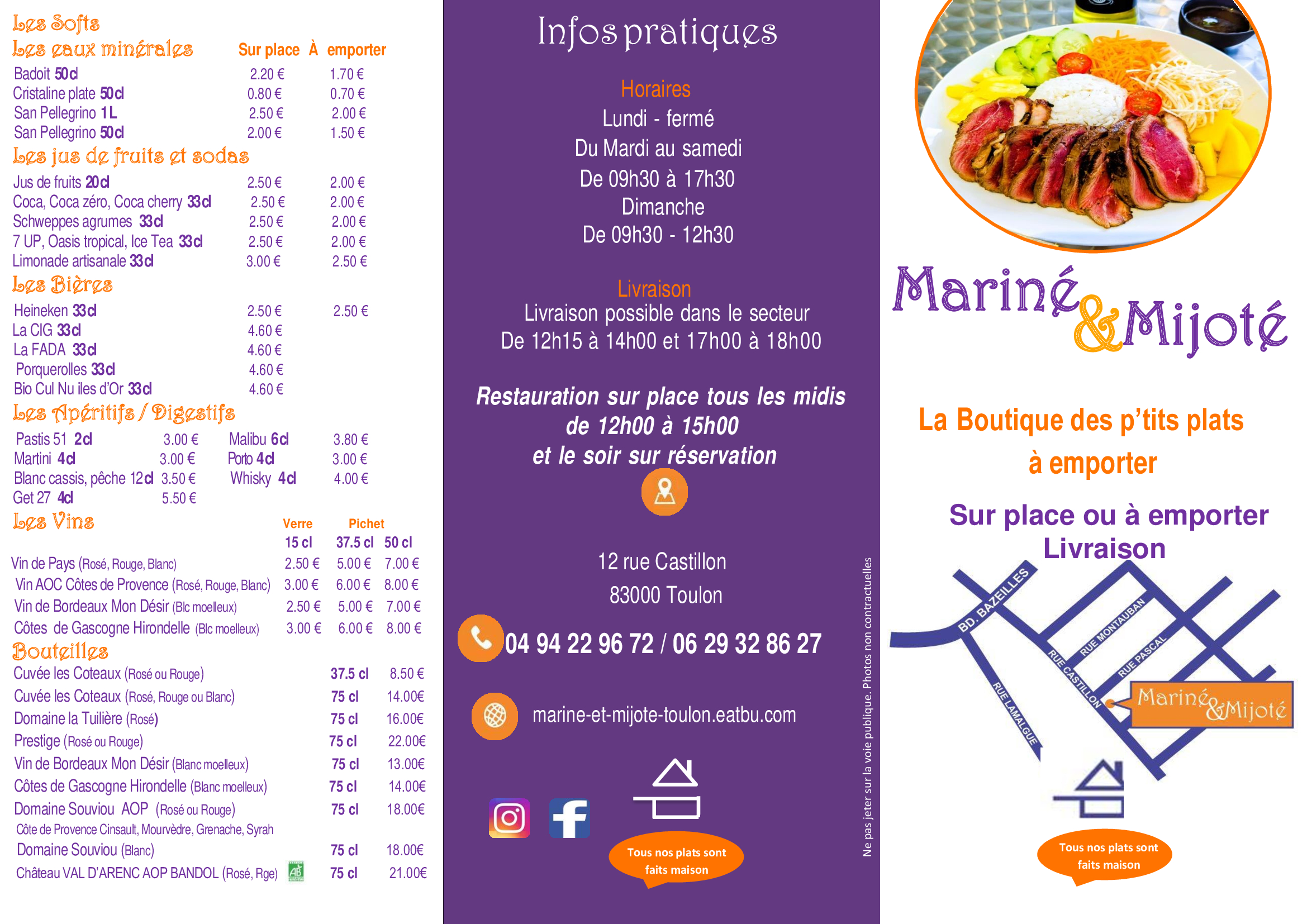 Vous trouverez exposés en vitrine dans notre boutique Mariné & Mijoté des p'tits plats ô saveurs d'ici et d'ailleurs à déguster où bon vous semble.